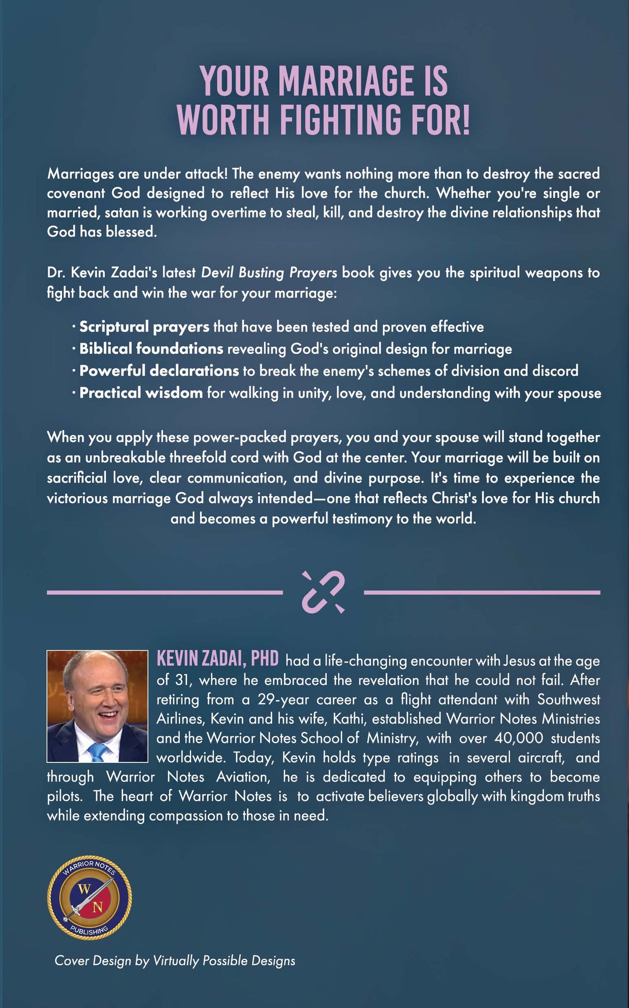 Dr. Kevin Zadai's latest Devil Busting Prayers book gives you the spiritual weapons to fight back and win the war for your marriage: