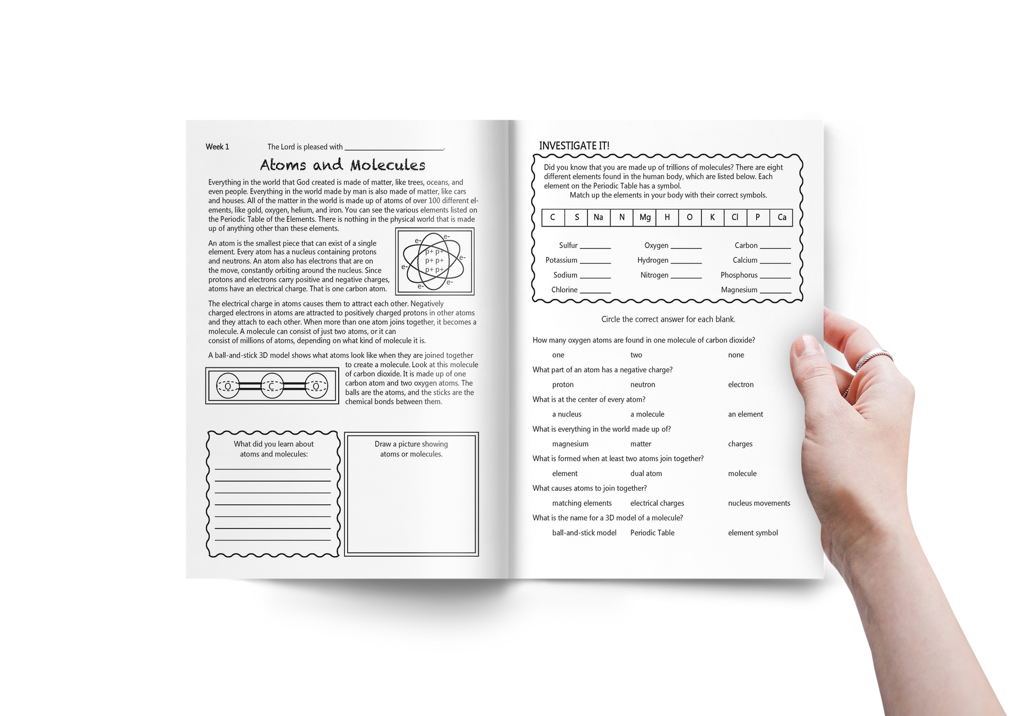 Students will learn how God created the universe and everything in it according to His perfect design and plan. As Colossians 1:17 (NLT) explains, "He existed before anything else, and he holds all creation together."